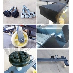 This 2 Ton Universal Vehicle Dolly System is a reliable tool designed for easy moving of disabled or immobile vehicles. It features a saddle for precise alignment and a pinch-weld clamp for safe loading and adjustment of the vehicle. It is equipped with swivel casters for smooth movement in tight spaces. This chassis-mount vehicle dolly is durable and easy to use, making it ideal for garages, repair shops, or any location where efficient vehicle positioning is required.