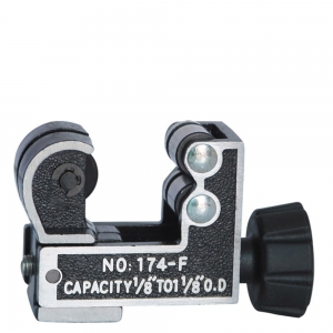 Polished steel rollers with flare cut-off groove fasten the tube for cutting.