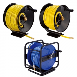 Hand crank hose reels offer lightweight, compact portability for long lengths ofhose. Eliminate the task of manually coiling and uncoiling hose and easily transport it to the job site on wheels. High pressure applications are no problemwith a 4,000 PSI rating.
