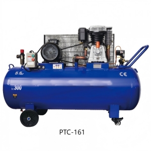 PTC-161 | 5.5hp/4kw | 790/870rpm | 523/576L/min | 174psi(12bar) | 300L/75Gallon | 169kg | 152*52*104cm |