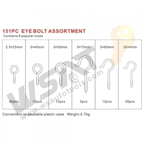 151pc eye bolt assortment set eyelet hook assorted eye screw contains 6 popular sizes