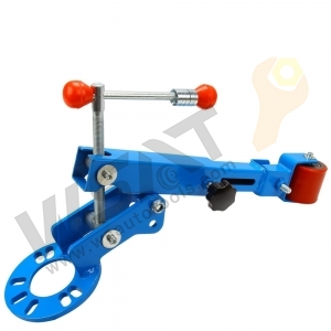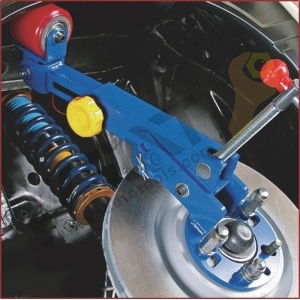 Adjustable arm has second telescoping arm with roller that allows for 180 degrees wheel swivel