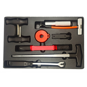 Place the tool under the edge of the door upholstery panel and insert it into the fastener as far as possible, then simply pry up.