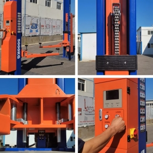 5 Ton Ultrahigh Clear Floor Lift offers a 5000 kg capacity with a max lifting height of 1820 mm and baseless design for unobstructed workspace access. Powered by dual 2.2 kW motors (220V/380V), it features electrical unlocking, 700-1100 mm adjustable arms, and a 2515 mm pass width for large vehicles. Precision SCM synchronization and hydraulic-mechanical dual safety ensure stable operation, ideal for high-clearance workshops demanding reliability and efficiency.