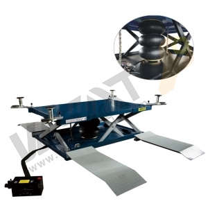 Pneumatic airbag system ensures smooth, controlled lifting and minimizes vibration during tire servicing.