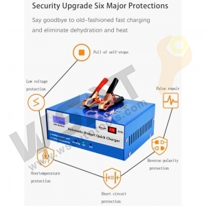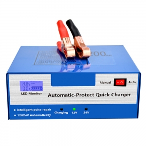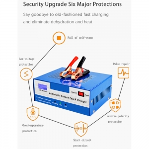 This battery charger can be used to charge and repair 12V/24V lead-acid batteries, water batteries, dry cell batteries and maintenance-free batteries. It can be used in motorcycles, battery trucks, bridge trucks, trucks and agricultural vehicles and so on. It features a five-stage pulse repair function that repairs and charges the battery and automatically stops charging to protect the battery.