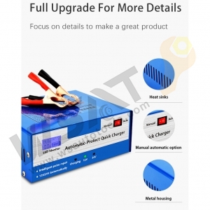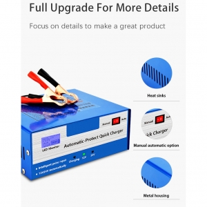 Manual automatic dual mode, 12V/24V universal battery, automatic inteligent charging, manual pulse repair* Digital percentage, real-time monitoring of charging status to ensure stable charging.