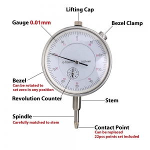[22pcs indicator point set] Our dial indicator contains 22 pieces indicator points to accommodate a variety of workpiece surfaces, AGD specifications (4-48 threads).