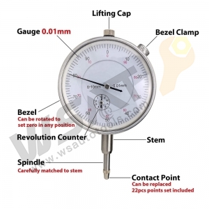 [Adjustable arm] The fine adjustable knob can be precisely positioned, to suit various working conditions for more accurate measurements, and the component surfaces are chrome-plated for smoothness and durability. The measuring range of our dial indicator is 0-10mm, and the reading can be accurate to 0.01mm.