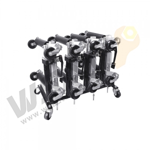 The Car Dolly Rack for Storing 4 Hydraulic Dollies is the perfect storage and organization solution for car wheel dollies. It holds up to 4 car dollies, even in tight spaces, and features four swivel casters for smooth, effortless movement. When not in use, the rack keeps your dollies organized, allowing you to move quickly to vehicles in need of repair and increase efficiency. It features a thick, durable design with strong load-bearing capacity to ensure long-term stability and safety. Ideal for home garages and auto repair shops.