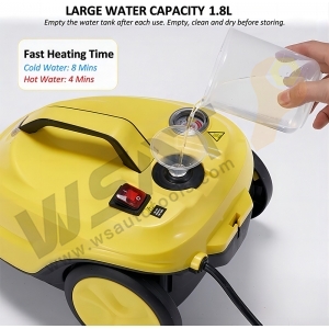 *LARGE CAPACITY TANK — The 1.8L water tank heats up in 8 minutes and provides up to 40 minutes of steam for continuous steam cleaning.