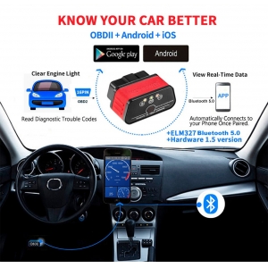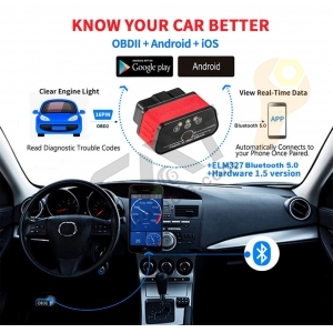 This Bluetooth OBD2 Scanner Diagnostic Tool is a small adapter that plugged into the vehicle OBDII connector via bluetooth, it is suitable for android and IOS smart phone or Windows PC. With this product, you will be able to perform a complete computer diagnostic car and even to correct minor faults without resorting to service stations.