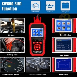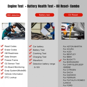 3 in 1 Battery Tester & Oil Service Light Reset & OBD2 Scanner Diagnostic Tool, car diagnostic scanner Works on all 1996 and newer 12V gasoline and diesel that are OBD II compliant. It can identify the cause of your CHECK ENGINE and perhaps fix it without going to see your dealer. It also assists you in easily passing annual emissions tests and SMOG CHECK. It covers full OBDII/ EOBD diagnostic functions for the engine system.