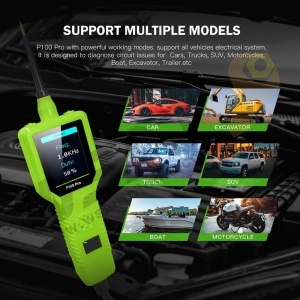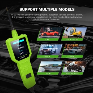Power Probe Automotive Electrical Circuit Tester 9V-30V is designed for comprehensive diagnostics of all 9V-30V vehicle. Compatible with motorbikes, cars, trucks, SUVs, boats, excavators, and construction machinery. Functions include multimeter, relay test, oscilloscope, leakage test, injector test/clean, and component activation, offering versatile support for vehicle maintenance and repair.