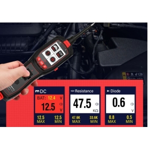 1. Intelligent test. No need to select the mode after startup, can quickly detect the voltage, resistance, diode in the vehicle electrical system line.