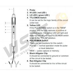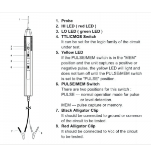 This logic Troubleshooting instrument will give visual (LED light) and audio indications