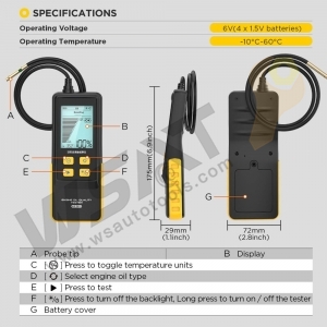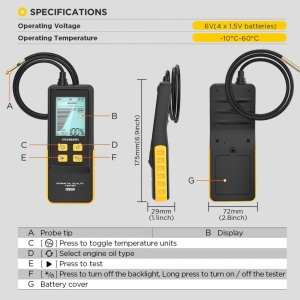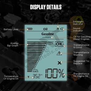 This Digital Engine Oil Tester is designed for the automotive inspection and maintenance sector. It measures the transparency of engine oil in gasoline or diesel engines, indicating impurities and contaminants. This helps assess oil quality and performance, preventing potential engine problems and ensuring efficient operation.