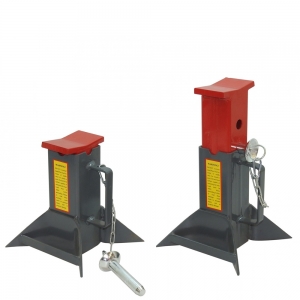 Industrial Pin Style Forklift Jack Stands are designed to hold your fork lift truck in the raised position when performing repairs and maintenance. Includes two Jack Stands with heat-treated holding pins for easy height adjustability. Heavy duty steel construction features a wide base design for stability.