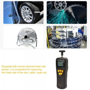 Digital Tachometer is applying the MCU and electrooptical technology, can perform measurement of rotating and linear rolling speed efficiently.