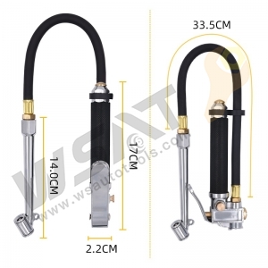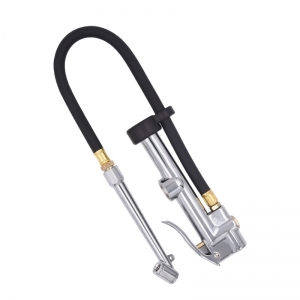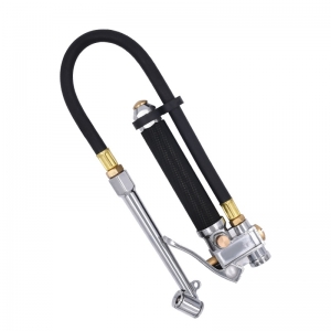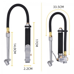 Heavy Duty Tire Inflator Air Pressure Gauge with Rubber Hose features a clear pressure scale (10-120 PSI or 10-170 PSI range) and Schrader-style valve fitting for universal tire compatibility. Built with durable steel construction, it ensures long-lasting reliability for quick, accurate inflation checks. Compact and user-friendly, it’s ideal for garages, roadside emergencies, or routine maintenance.