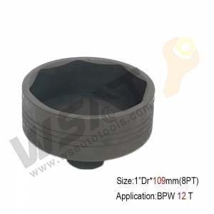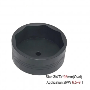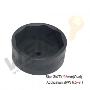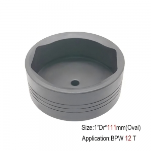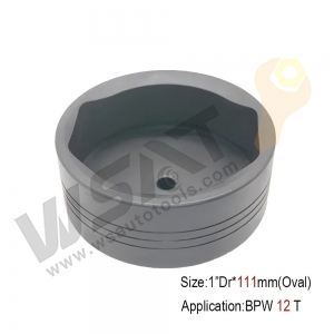 Special heavy duty oval shape socket with two flats on the side to suit BPW rear axle hub retaining cap nuts fount on later model Japanese commercial trucks, tractors and other automotive industrial equipment.