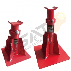The Heavy-Duty Vehicle Support Stand features sturdy welded steel construction for superior safety and strength. Its heavy-gauge steel frame helps prevent distortion or twisting, ensuring reliable performance even under heavy loads. The pin design support column allows for height adjustments, and the adjustment pin is securely attached to the stand to prevent loss. For added convenience, the stand includes a handle for easy positioning and carrying. Ideal for safely supporting heavy vehicles during maintenance or repairs.