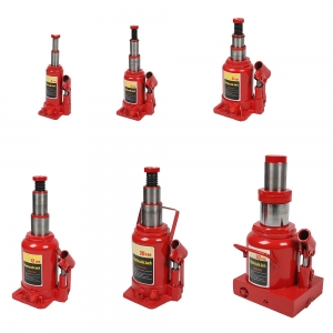 The Double Ram Welded Hydraulic Car Bottle Jack offers optional lifting capacities from 2 to 32 tons, making it suitable for both residential and commercial applications. Its dual-stage, steel-hardened rams provide longer travel, ensuring reliable performance and versatility for various lifting tasks.