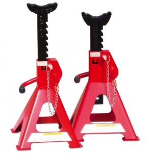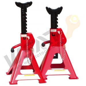 The Jack Stand with Safe Pin, equipped with a safety pin for secure operation, this stand guarantees added safety during vehicle maintenance. Constructed from high-grade forged steel with a welded frame design, it offers durability and reliability. Suitable for a wide range of vehicles, including small cars, SUVs, and light-duty trucks, it features a multi-position ratchet bar with a sawtooth design for quick and secure height adjustments. The large saddle surface area ensures better contact with the load, while the wide pyramid foot base provides enhanced strength and stability during use.