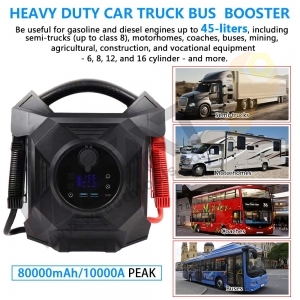 12V/24V Jump Starter (80000mAh) with Battery Charger for Heavy-Duty Vehicles – Designed for gasoline and diesel engines up to 45 liters, including semi-trucks (up to Class 8), motorhomes, coaches, buses, mining, agricultural, construction, and vocational equipment with 6, 8, 12, and 16 cylinders.