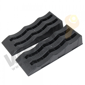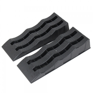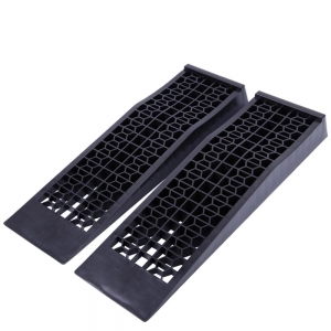 These black plastic car service ramps provide solid support for cars, small trucks and lawnmowers, making maintenance easy and efficient. They are made of high-strength plastic that is lightweight and durable. With a weight capacity of 10,000 pounds per pair, they can move most vehicles effortlessly. Rubber feet ensure stability and prevent slipping during use. These vehicle service ramps are specially designed to be easy to move and stack, saving storage space when not in use.
