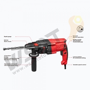 One Button with 4 fuctions,Hammer drilling/Drilling/Chiseling/Chisel rotation,improve working efficiency.