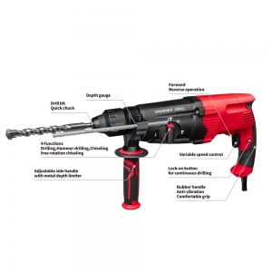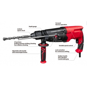 One Button with 4 fuctions,Hammer drilling/Drilling/Chiseling/Chisel rotation,improve working efficiency.