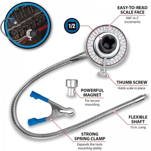 Two-in-one design: The two-in-one angle torque meter is equipped with a flexible and adjustable soft rod, and the end can be freely switched and inserted into the equipped clip or magnet adapter.
