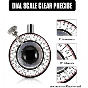 Accurate Scale: Torque Angle Gauge is easy to read with 360° angle display, there are 2 degree increments and 10 degree interval marks on the dial to ensure accurate scale, clear reading and easy to 0°.