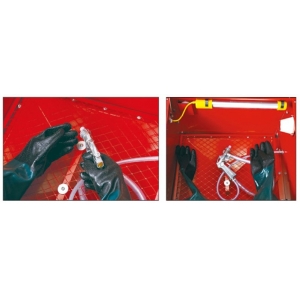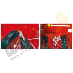 ◆ Through the sealed rubber glove parts,you control the high-efficiency air blast gun inside,directing 100 maximum PSI abrasive flow to clean parts FAST!