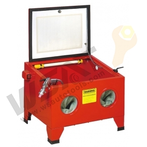 ◆ Red finish steel cabinet have a transparent plastic top door helps keep abrasive dry