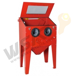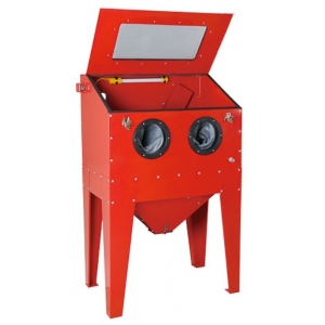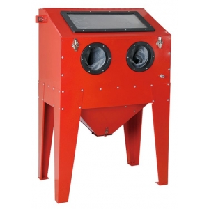 Blastrust,corrosion and paint on large parts in a enclosed cabinet to keep dust off the floor and out of the air.