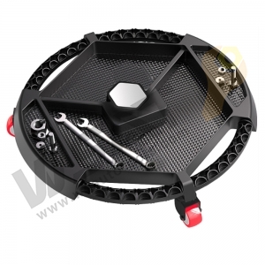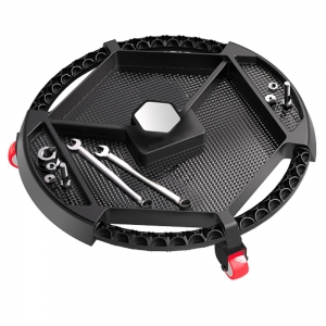 Recessed storage compartments allow for organized tool placement, keeping your tools and hardware within reach while working. The lighted design provides illumination in dark corners, making it ideal for low-light conditions.