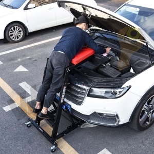 The 400lbs Adjustable Height Engine Creeper is built with heavy-gauge steel and features a powder coat finish for durability and scratch resistance. Its padded deck, covered with heavy-duty vinyl, ensures comfort and long-lasting use. Designed with adjustable height, it provides ease of use for various tasks. The unit folds away for convenient storage, and its four casters allow smooth mobility, with two locking casters ensuring secure positioning. With a maximum capacity of 400 lbs, this engine creeper is a reliable tool for professional and personal use.