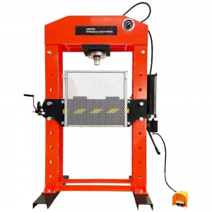 Industrial Electric Hydraulic Shop Press are used for straightening, bending, pressing and stamping tasks. The pressing frame consists of welded construction to provide maximum durability and strength. Equipped with an electric pump, this electric hydraulic shop press is suitable for heavy-duty tasks, and it is available with load capacity options from 100 tons. This press is ideal for industrial uses including metal stamping, bending, flattening, removing gears, bearings and bushings, flattening and more.