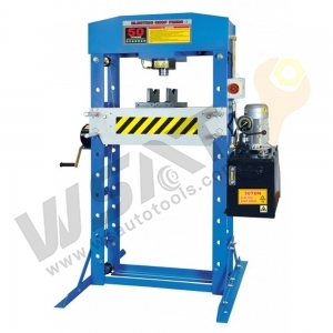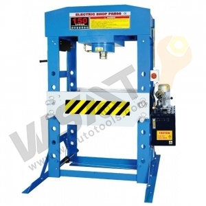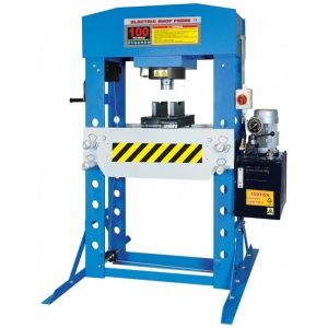 This Electric Hydraulic Shop Press is equipped with an electric pump, suitable for heavy-duty tasks, and it is available with load capacity options from 50 to 150 tons. The pressing frame consists of welded construction to provide maximum durability and strength. Its manually adjustable table height allows the shop press to fit a variety of projects, ensuring both accuracy and efficiency.