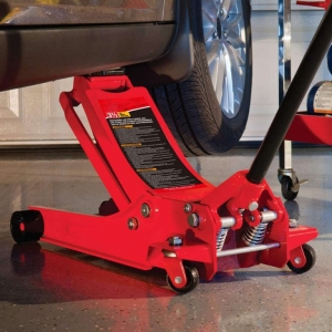 The Slow Down Quick Lift Low Profile Double Pump Floor Jack combines speed and control with its fast-lifting dual pump and slow-down design for safe operation. Equipped with two large steel casters and two 360-degree swivel casters, it ensures smooth maneuverability and precise positioning, making it an excellent choice for efficient and reliable lifting tasks.
