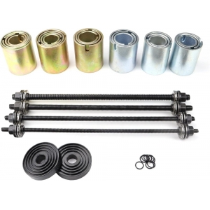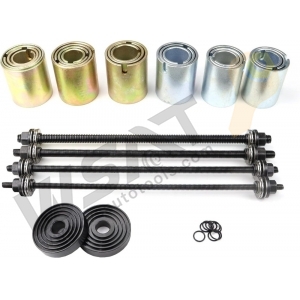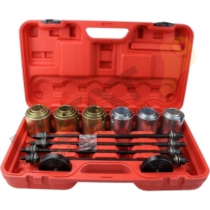 Comprehensive kit for fast and effective in situ removal/installation of wheel bearings/suspension bushes and seals.
