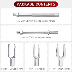 ·Includes three forks for various sized ball joints. Internal jaw widths are 17mm,24mm &28mm.