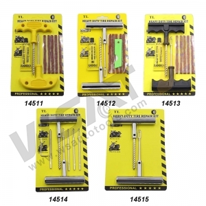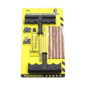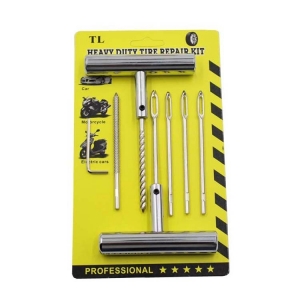14512 | 9pcs Tire Repair Tool Kit | 2pcs heavy duty T- handle tool with needle 5pcs 8”strings 1pc cement 1pc knife |