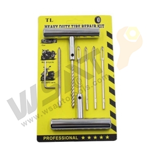 14514 | 7pcs Tire Repair Tool Kit | 2pcs heavy duty T- handle tool with needle 4pcs replacement needle 1pc wrench |