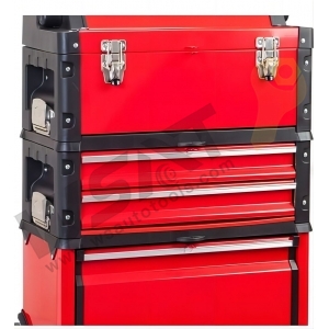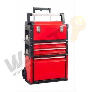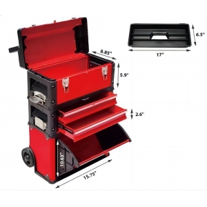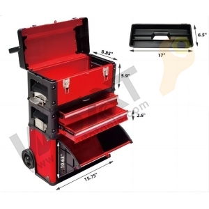 Top section is a tool box with an aluminum handle and a large, removable storage tray that provides an easy access to your tools and has a metal latch closure.