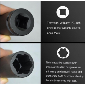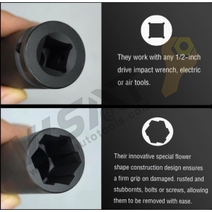 【Easy to Use】Simply select the appropriate socket size, fix it onto the damaged nut using a hammer, and attach any 1/2 inch drive impact wrench, electric or pneumatic tool to the socket, then turn counterclockwise to loosen the nut.