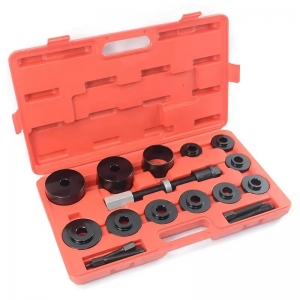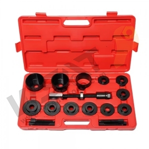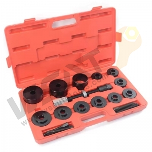 Comprehensive set for the removal and installation of front hub bearings without the need to dismantle the steering assembly.Can be used with an impact wrench.