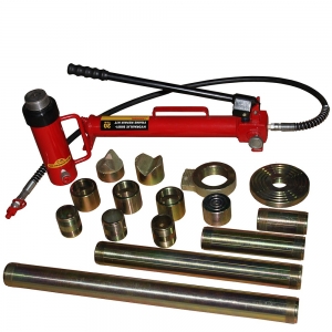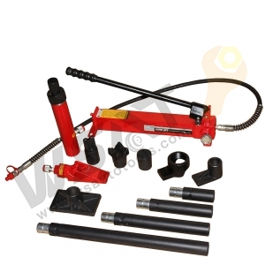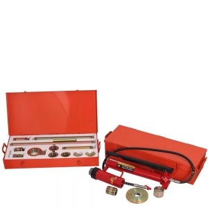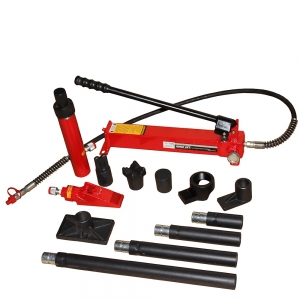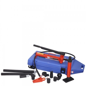 This Heavy-duty Hydraulic Porta Power Kit features heavy-duty construction with load capacities ranging from 15 to 20 tons, making it ideal for demanding repair tasks. This portable hydraulic jack is ideal for paint shops and collision repair centers to press, spread, lift, straighten and clamp panels. It includes different repair heads for versatility in a variety of applications. Portable and easy to transport, this Heavy-duty Porta Power Kit offers excellent power and control to ensure efficiency and precision. Whether it's frame repair or other heavy-duty tasks, this portable power jack delivers superior performance in any professional environment.